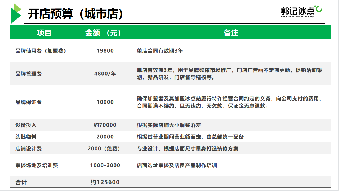 郭记冰点只开放“单店加盟”合作模式,不招区域代理。